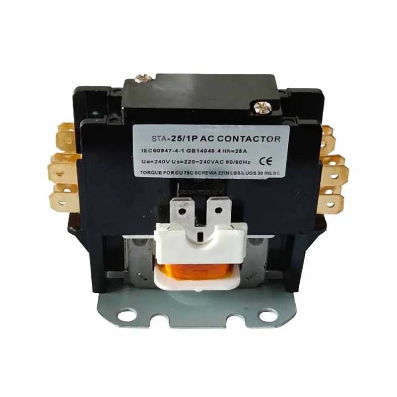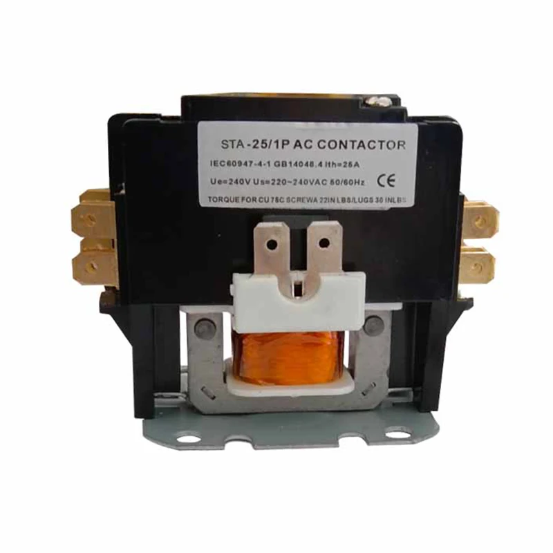 1.5p 25A Ауаның айнымалы токтың кондиционері Контакторлар белгілі бір мақсатта, айнымалы ток контакторы тоңазытқыш, кондиционерлеу, ауа баптау және электр жылыту шнайттарында пайдалануға арналған. Қуат қосылымдарын тез қосылатын немесе жылдам қосылатын терминалдармен бұрандалы терминалдармен жасауға болады Олар IEC60947-4-1 сәйкес келеді